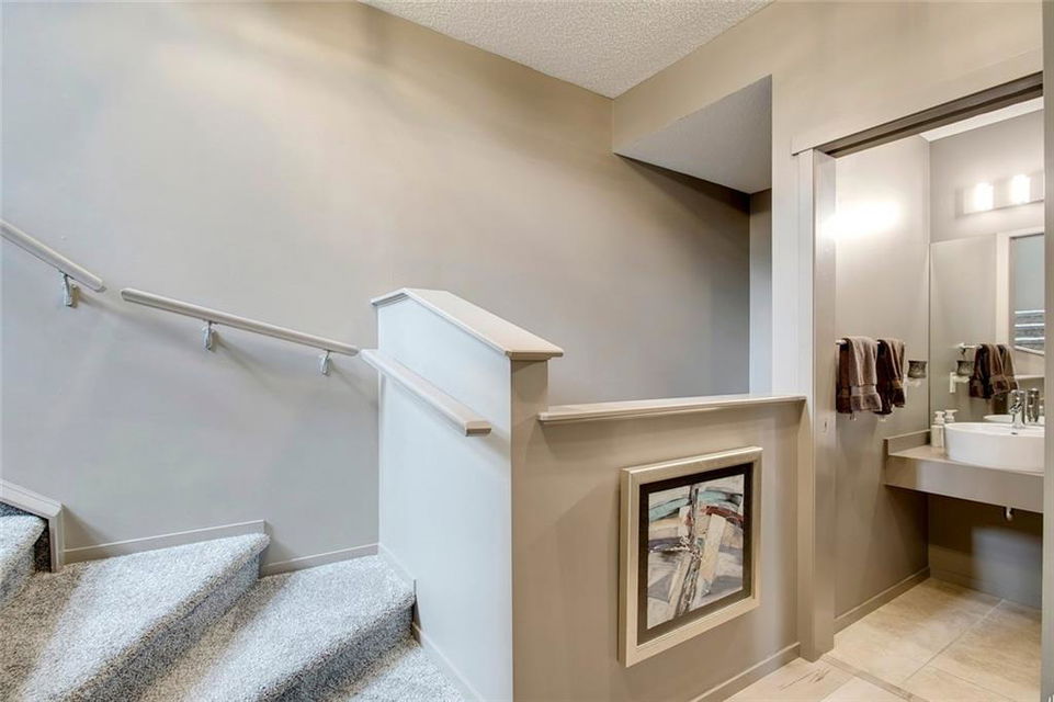 Copperfield – 88 Copperstone Cove SE: This immaculate 3 storey end unit townhouse features 1,817 sq ft of development with many updated features, backing onto walking paths and pond. The main floor features a bright kitchen with granite countertops, custom island and S/S appliances, dining area, living room with fireplace and balcony access with views of the walking path and pond. The upper level has a master bedroom with walk-through closet and 4 pc ensuite, 2 additional bedrooms, 4 pc main bathroom and laundry. The lower level has a den with french doors leading to the concrete patio and access to the double car garage with extra parking on the driveway. Recent updates include granite countertops, custom kitchen island, back splash, carpet, laminate flooring and all light fixtures. This home is close to schools, parks, pathways, transit, Stoney Trail and minutes away from Deerfoot trail. Call for more info!