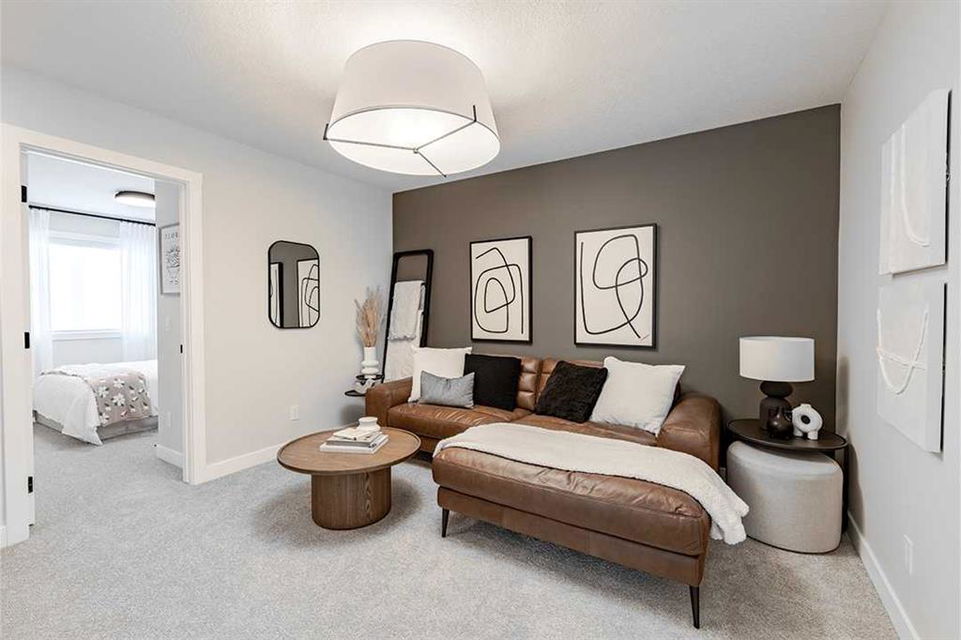 Vilano II by Shane Homes in the community of Esker Park. Laned home located on an oversized lane lot, offering added flexibility and value. The price includes the buyer’s choice of a garage or a developed basement. This pre-construction home is fully customizable and features 4 bedrooms, including 3 bedrooms upstairs and 1 bedroom on the main floor, along with a full main-floor bathroom, ideal for guests. The main level offers a functional mudroom, open-concept living and dining area, and a kitchen with pantry designed for everyday use. The upper level includes a primary bedroom with ensuite and walk-in closet, a family room, side-by-side laundry, additional bedrooms, and a full bathroom. Photos are illustrative and are for representative purposes only.