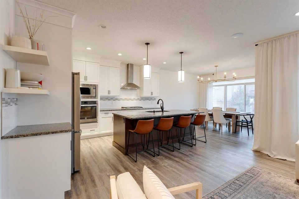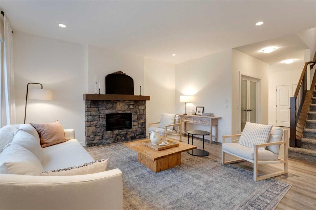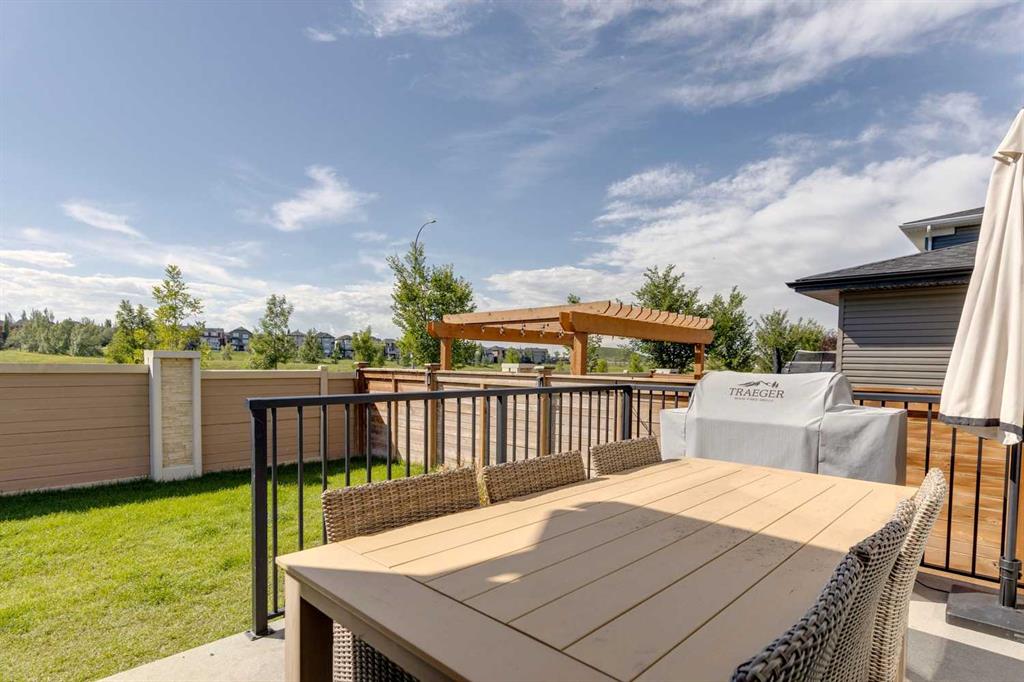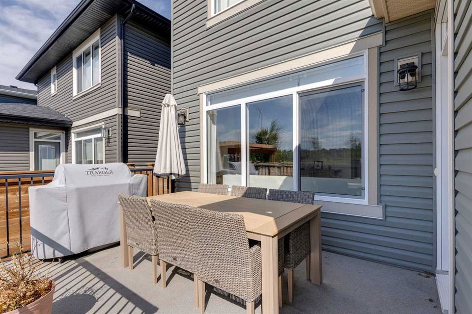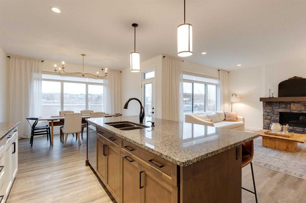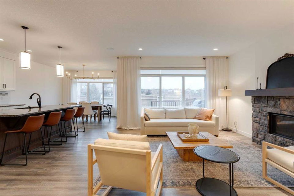 Sage Hill – 97 Sage Bluff Close NW: Welcome to this beautifully finished, fully developed 2-storey home in the sought-after community of Sage Hill! Offering over 3,300 sqft of living space, this home features 4 bedrooms (3 up + 1 down), 3.5 bathrooms, and an oversized double attached garage – perfect for growing families or anyone looking for extra space. From the moment you step inside, you’re greeted by a sun-filled main floor and a cozy, inviting entryway. The open-concept kitchen is a chef’s dream, complete with granite countertops, stainless steel appliances including a gas cooktop, built-in oven, chimney hood fan, and a stylish 2-toned island with seating for four. You’ll love the walk-through pantry that makes grocery runs a breeze. Enjoy family meals in the sunny breakfast nook, with direct access to the west-facing backyard – great for evening BBQs! The cozy living room with a stone fireplace and mantle is perfect for unwinding. A private main floor den with French doors, a 2-piece powder room with built-in vanity, and a spacious mudroom with a bench and hooks finish off this level. Upstairs, you’ll find a spacious primary suite featuring large west-facing windows (no neighbours behind!), a walk-in closet, and a luxurious 5-piece ensuite with dual sinks, a soaker tub, walk-in shower, and private toilet area. Two good-sized bedrooms, a bright bonus room, a 3-piece main bathroom, and a convenient laundry room with a sink and built-in cabinetry round out the upper floor. The fully finished basement offers even more space with a large family room, games/rec area, wet bar with cabinetry and display shelving, a 4th bedroom, and another 3-piece bathroom with a walk-in shower – perfect for guests, older kids, or entertaining. Additional features of this home include built-in speakers throughout, a sunny vinyl deck with a gas line for your BBQ, a fully fenced west-facing backyard, and an oversized double garage. Living in Sage Hill means you’re close to everything – shopping, restaurants, parks, and easy access to major roads like Shaganappi Trail, 144 Avenue, and Stoney Trail. Don’t miss out on this move-in-ready home – reach out today for more information or to book your private showing!