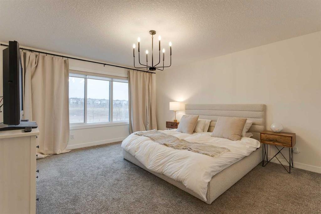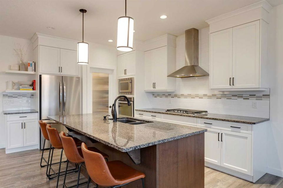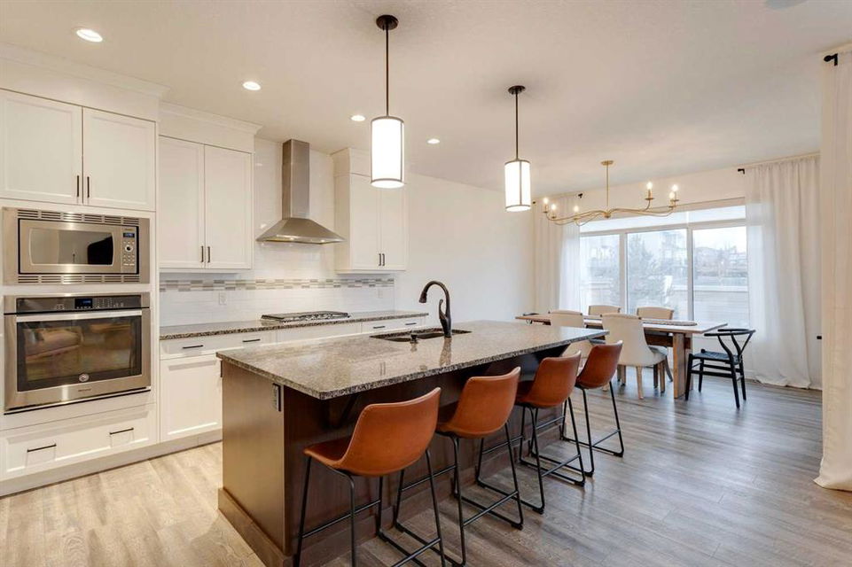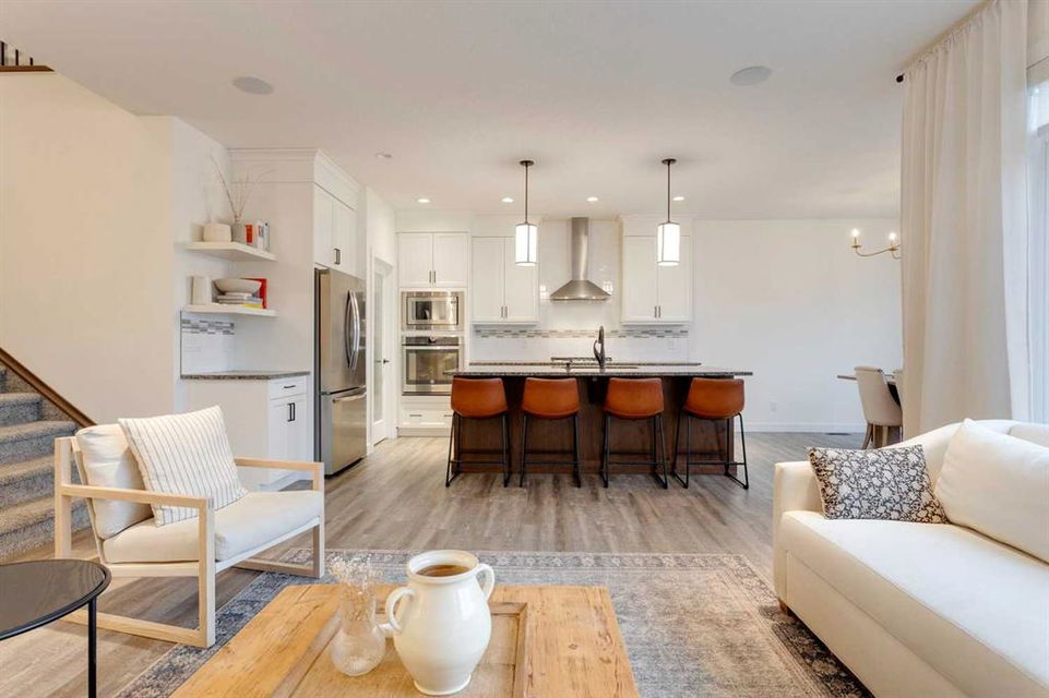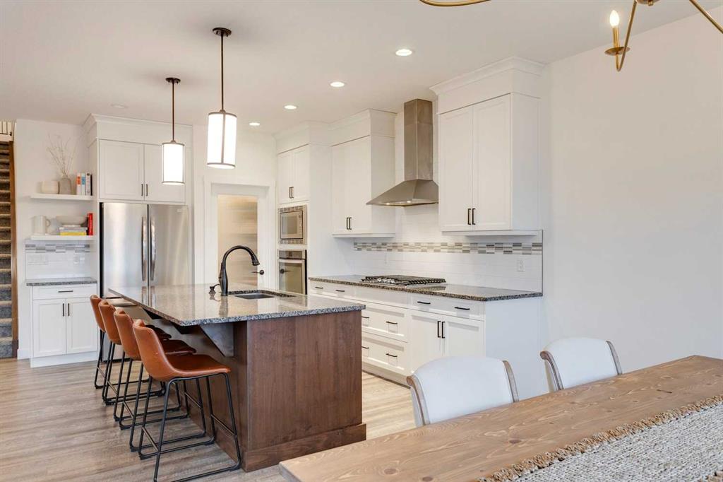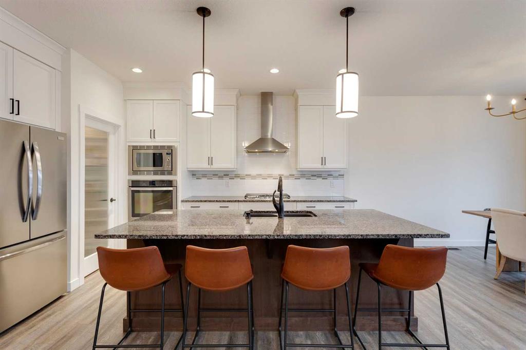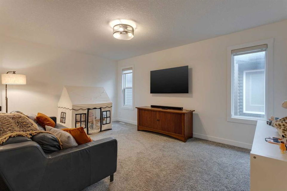 Sage Hill – 97 Sage Bluff Close NW: Welcome to this beautifully finished, fully developed 2-storey home in the sought-after community of Sage Hill! Offering over 3,300 sqft of living space, this home features 4 bedrooms (3 up + 1 down), 3.5 bathrooms, and an oversized double attached garage – perfect for growing families or anyone looking for extra space. From the moment you step inside, you’re greeted by a sun-filled main floor and a cozy, inviting entryway. The open-concept kitchen is a chef’s dream, complete with granite countertops, stainless steel appliances including a gas cooktop, built-in oven, chimney hood fan, and a stylish 2-toned island with seating for four. You’ll love the walk-through pantry that makes grocery runs a breeze. Enjoy family meals in the sunny breakfast nook, with direct access to the west-facing backyard – great for evening BBQs! The cozy living room with a stone fireplace and mantle is perfect for unwinding. A private main floor den with French doors, a 2-piece powder room with built-in vanity, and a spacious mudroom with a bench and hooks finish off this level. Upstairs, you’ll find a spacious primary suite featuring large west-facing windows (no neighbours behind!), a walk-in closet, and a luxurious 5-piece ensuite with dual sinks, a soaker tub, walk-in shower, and private toilet area. Two good-sized bedrooms, a bright bonus room, a 3-piece main bathroom, and a convenient laundry room with a sink and built-in cabinetry round out the upper floor. The fully finished basement offers even more space with a large family room, games/rec area, wet bar with cabinetry and display shelving, a 4th bedroom, and another 3-piece bathroom with a walk-in shower – perfect for guests, older kids, or entertaining. Additional features of this home include built-in speakers throughout, a sunny vinyl deck with a gas line for your BBQ, a fully fenced west-facing backyard, and an oversized double garage. Living in Sage Hill means you’re close to everything – shopping, restaurants, parks, and easy access to major roads like Shaganappi Trail, 144 Avenue, and Stoney Trail. Don’t miss out on this move-in-ready home – reach out today for more information or to book your private showing!