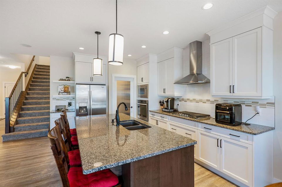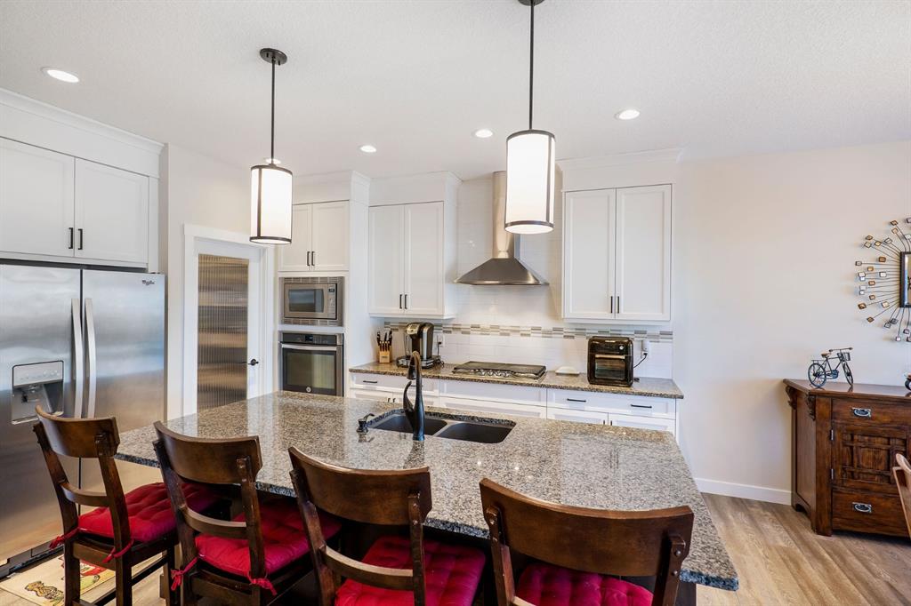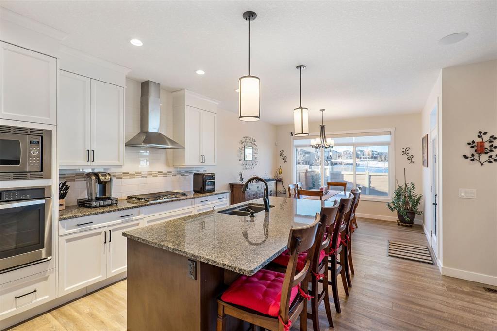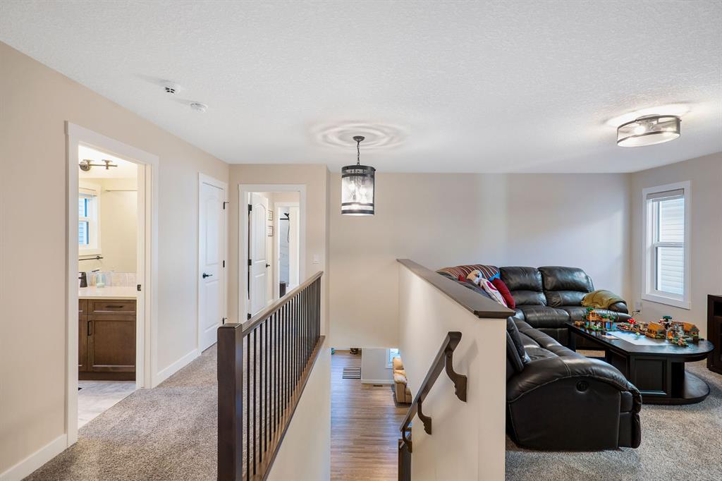 Incredibly rare opportunity on one of the sought after streets in Sage Hill! Backing onto greenspace with gorgeous views from this perfect family home. Built in 2017, this fully finished home is immaculately kept and boasts almost 3500 sqft of developed living space. Great curb appeal on a quiet close with a fully landscaped low maintenance yard with irrigation. When you first enter the property, you will immediately feel the warmth and comfort of this home with its open concept floor plan. This home offers a generous sized living room with a feature stone fireplace, gleaming hardwood throughout and a large chefs kitchen. This dream kitchen boasts granite countertops, stainless steel appliances, floor to ceiling cabinetry, huge walk through pantry and a massive island, great for entertaining. Enjoy the wonderful unobstructed views of greenspace and walking paths from the property’s large back deck with sunny south west exposure. A 2 pc powder room & office with french doors completes the main level. Upstairs you are greeted by a generous sized bonus room, upper floor laundry and three bedrooms. The large master bedroom features views of the greenspace and includes a luxurious ensuite with tile detailing, soaker tub, walk-in shower, separate his and her vanities, walk-in closet and water closet. The fully finished basement boasts a large recreation room with a wet bar and an additional work out area. 4th bedroom & additional guest bathroom completes this level. Built-in sound system!Double attached garage that is oversized and insulated. Exceptional value in Sage Hill! A wonderful location close to all amenities and walking paths with quick access out of the community. Lovingly cared for home.